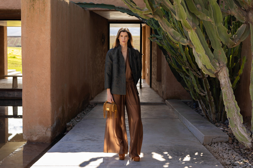 Flowy Wide Leg Trousers - Brown